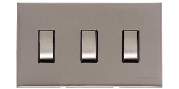 3 Gang Rocker Switch Twin Plate Collection: Winchester Range Finish: Satin Nickel Code: W05.520.SNBK
