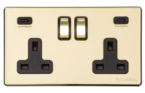 Unity Range Unlacquered Brass | 2G 13A Socket with USB-C+C