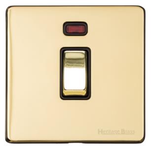 Unity Range Unlacquered Brass | 20A Double Pole Switch with Neon