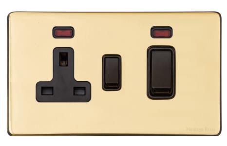 Unity Range Unlacquered Brass | 45A Cooker Unit + 13A Socket