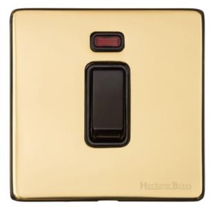 Unity Range Unlacquered Brass | 45A DP Cooker Switch with Neon (single plate)