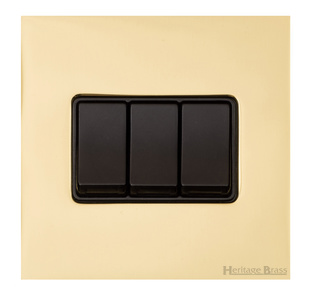 Windsor Range Polished Brass | 3 Gang Rocker Switch