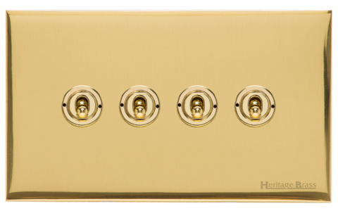 Windsor Range Polished Brass | 4 Gang Toggle Switch
