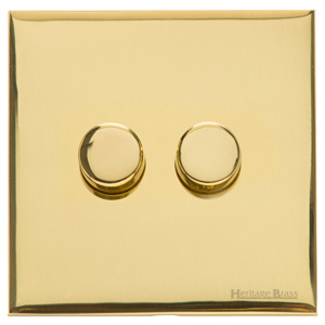 Windsor Range Polished Brass | 2 Gang TED Dimmer (Compatible with LED Lamps)
