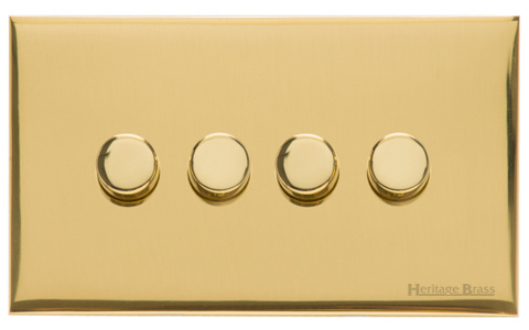 Windsor Range Polished Brass | 4 Gang TED Dimmer (Compatible with LED Lamps)