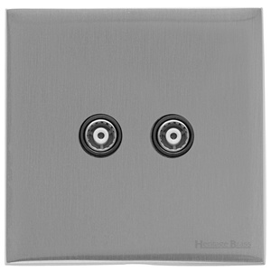 Windsor Range Satin Chrome Silk (Project Finish) | 2 Gang TV Coaxial Socket