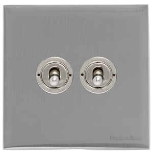 Windsor Range Satin Chrome Silk (Project Finish) | 2 Gang Toggle Switch