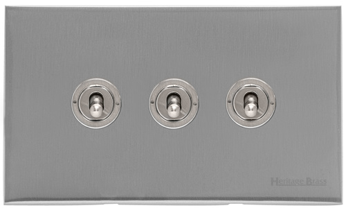 Windsor Range Satin Chrome Silk (Project Finish) | 3 Gang Toggle Switch