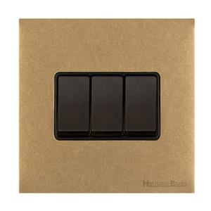 Windsor Range Aged Brass | 3 Gang Rocker Switch