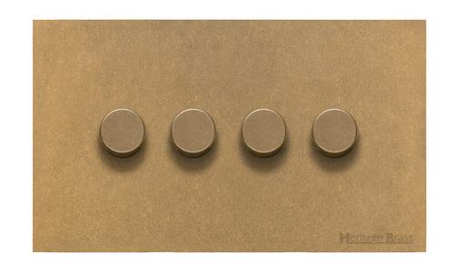 Windsor Range Aged Brass | 4 Gang TED Dimmer (Compatible with LED Lamps)