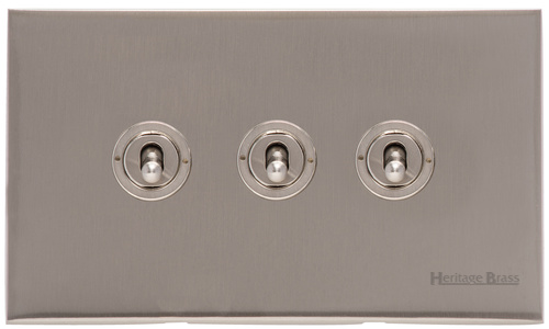 Windsor Range Satin Nickel | 3 Gang Toggle Switch