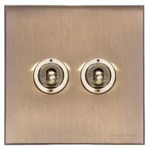 Windsor Range Antique Brass | 2 Gang Stockholm Toggle