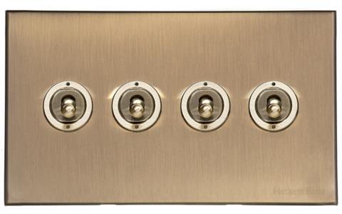 Windsor Range Antique Brass | 4 Gang Stockholm Toggle