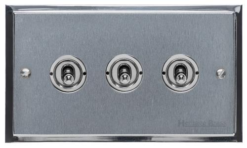 Elite Stepped Plate Range Satin Chrome | 3 Gang Toggle Switch