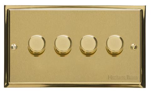 Elite Stepped Plate Range Satin Brass | 4 Gang TED Dimmer (Compatible with LED Lamps)