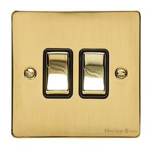 Elite Flat Plate Range Polished Brass | 2 Gang Rocker Switch