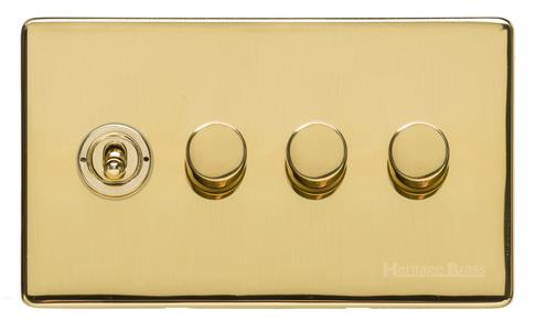 4G Mixed Toggle Dimmer Switch 1xToggle 3xTED Collection: Vintage Range Finish: Unlacquered Polished Brass (Project Finish) Code: XUL-1TOG-3TED