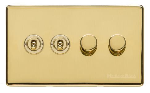 4G Mixed Toggle Dimmer Switch 2xToggle 2xTED Collection: Vintage Range Finish: Unlacquered Polished Brass (Project Finish) Code: XUL-2TOG-2TED
