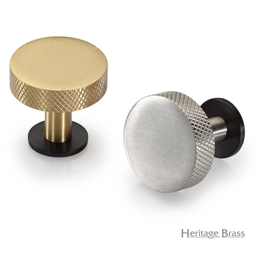Heritage Brass Cabinet Knob Knurled Disc Design with Rose 32mm Matt Bronze/Satin Brass finish