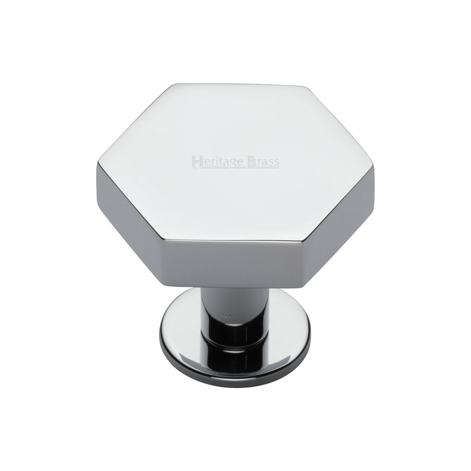 Heritage Brass Cabinet Knob Hexagon Design with Rose 32mm Polished Chrome finish