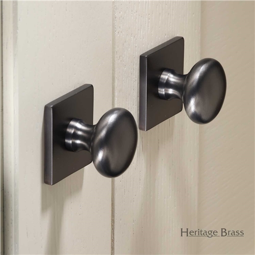 Heritage Brass Cabinet Knob Victorian Round Design with Square Backplate 32mm Matt Bronze finish