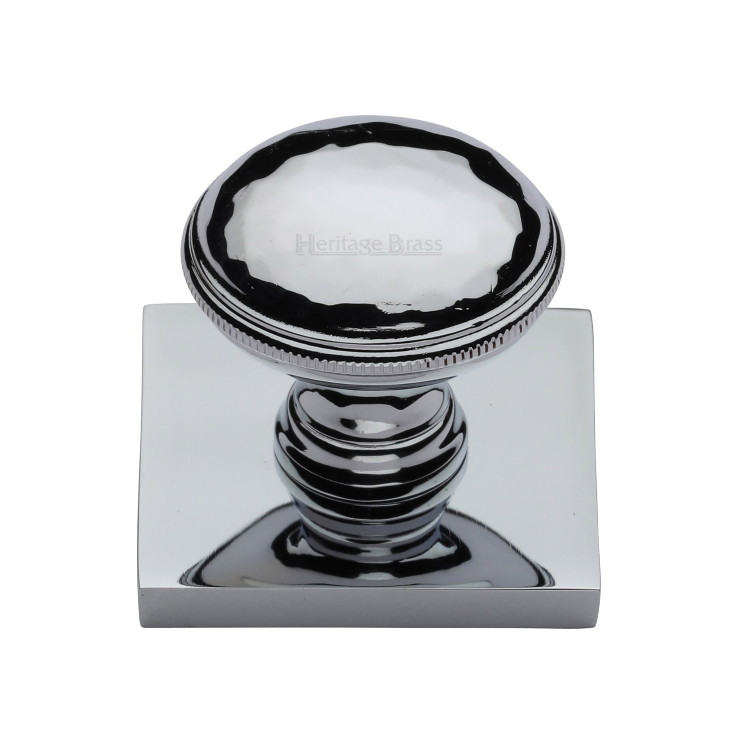 Heritage Brass Cabinet Knob Diamond Cut Design with Square Backplate 32mm Polished Chrome finish