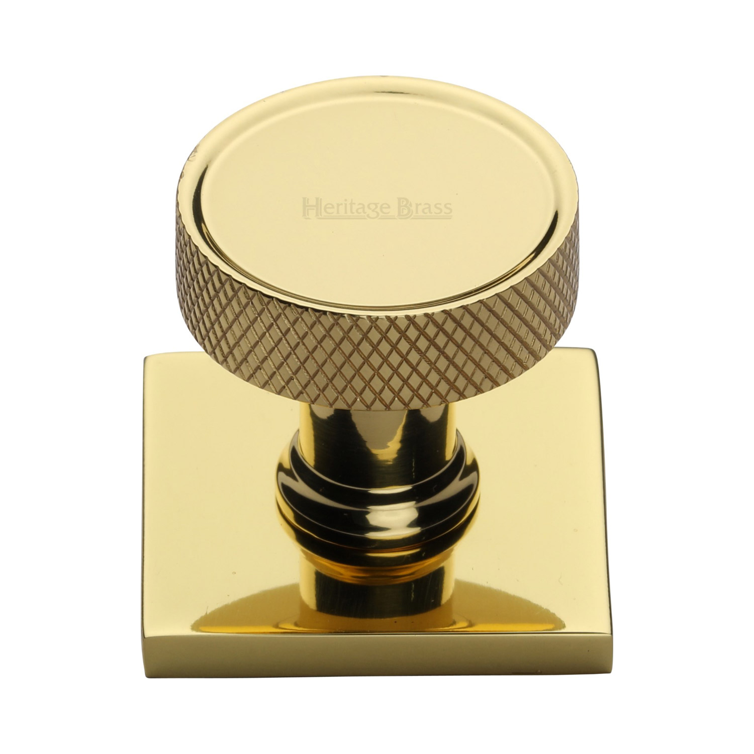 Heritage Brass Cabinet Knob Florence Knurled Design with Square Backplate 32mm Polished Brass finish
