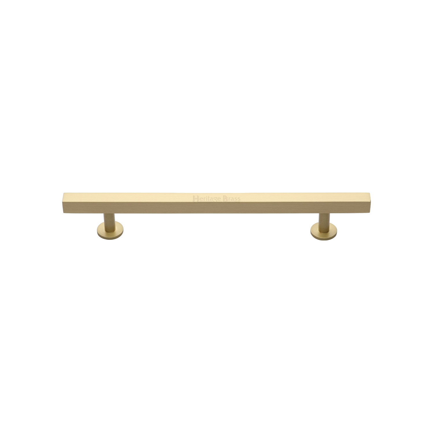 Heritage Brass Cabinet Pull Square Design with Footings 128mm CTC Satin Brass finish