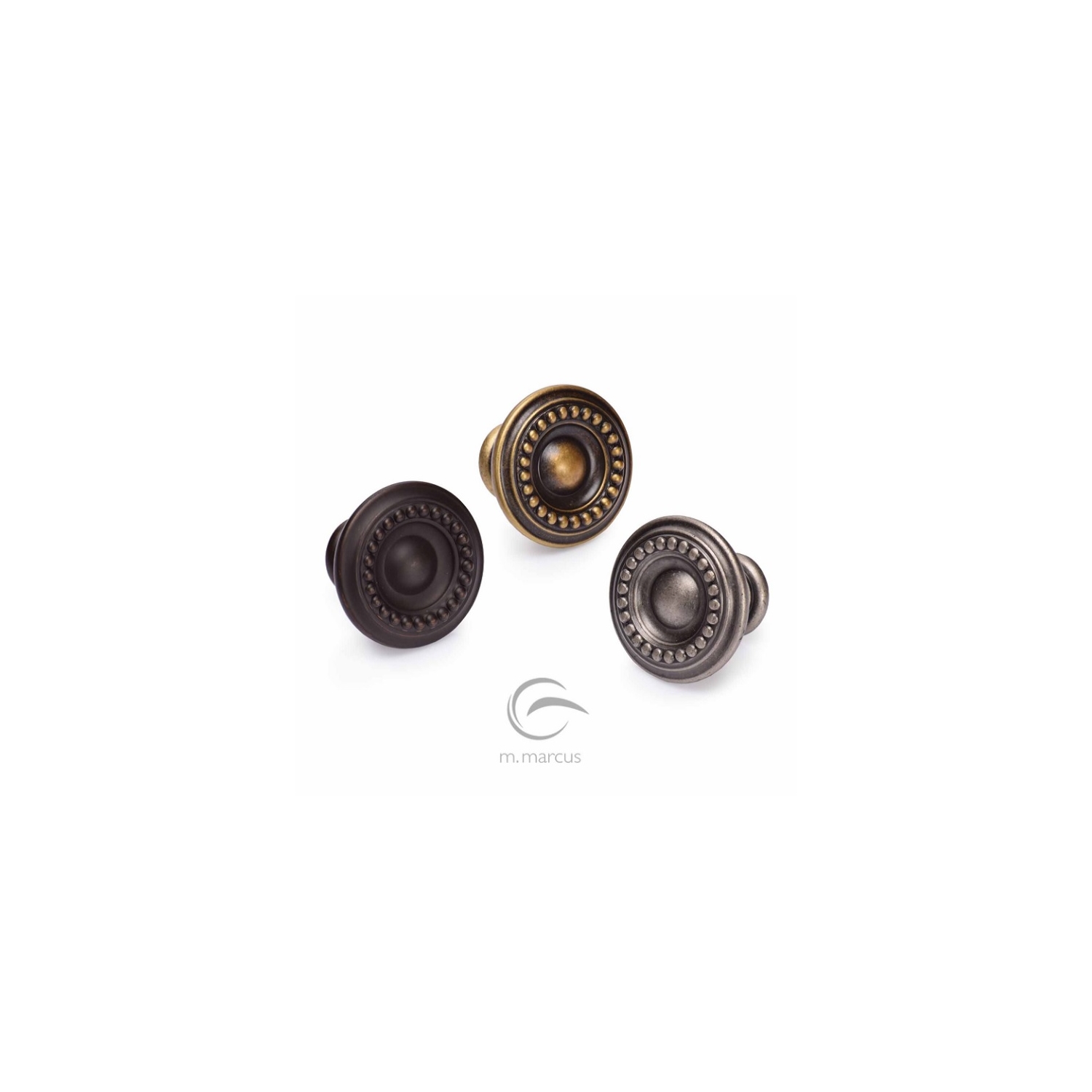 Beaded Round Knob 035mm Distressed Brass on Zinc finish